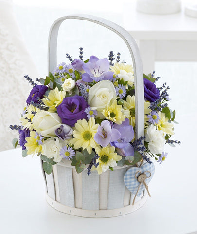 • White, yellow, purple colors are perfectly exposed by roses, lisianthus, spray carnations, daisies and other selected fresh-cut flowers