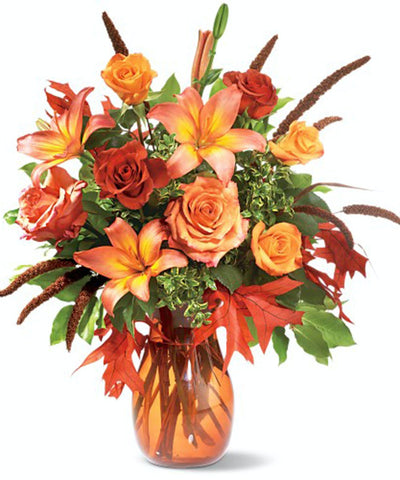 A symphony of autumn color, this many-splendored floral arrangement makes an unforgettable gift for any occasion - or just because.