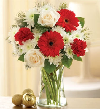 - The freshest roses, Gerbera daisies, carnations, cushion poms, and salal, beautifully hand-designed by our select florists and accented with assorted holiday greens