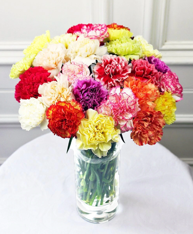 Imagine your recipient's surprise when two dozen beautiful carnations in assorted colors arrive at their doorstep! The sweet fragrance of long lasting blooms make carnations a traditional favorite. To allow these beautiful flowers to last much longer, they are shipped fresh, budding, and ready to bloom.