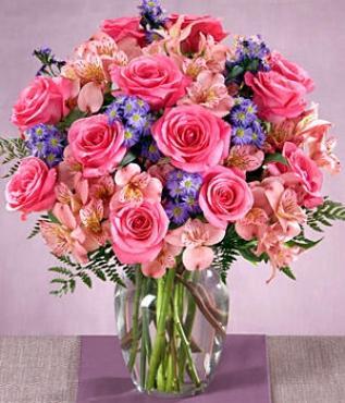 Isn't she pretty in pink? Of course she is! So reward her with Pink Rainbow, with about as much pink as we can muster! 12 pink roses, Peruvian lilies, asters and much more.