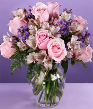 Know someone who looks pretty in pink? Then send them Pink Sapphire, a "powered by pink" bouquet of 8 fresh cut pink roses, Peruvian lilies, asters, and more. And pink roses represent elegance and are a great way to communicate thanks and admiration.