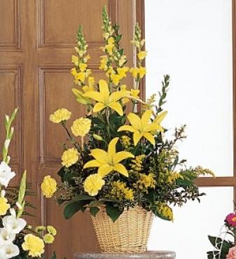 Like a ray of hope, this wonderful arrangement of yellow carnations, snapdragons and lilies will spread warmth and inspiration.