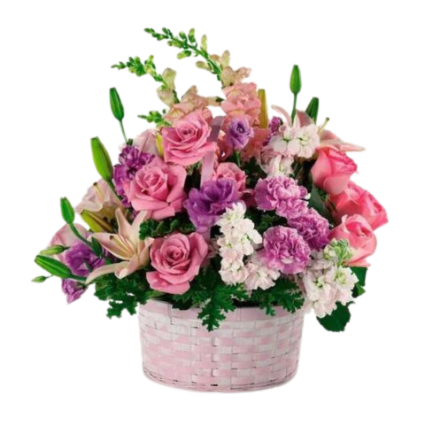 This luxury flower basket is an explosion of feelings and nature! Long lasting and blossoming combination of flowers brings a pure joy to your special someone.