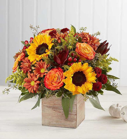 Here's a great opportunity to make someone's day. Just send this bright arrangement of fresh fall flowers to your loved one!