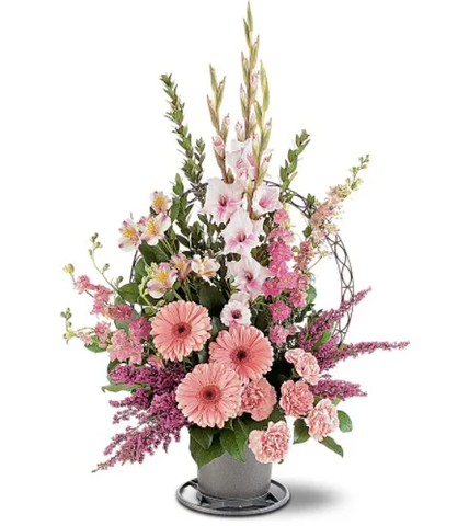 Let the family know you're thinking of them with this simple, lovely floral arrangement blending seasonal favorites in all shades of pink.