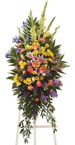 If you want to send a message of hope, this lovely spray with its pink, yellow and lavender flowers sends it harmoniously.
